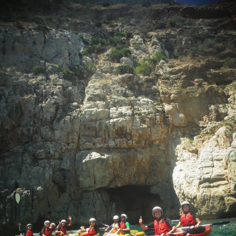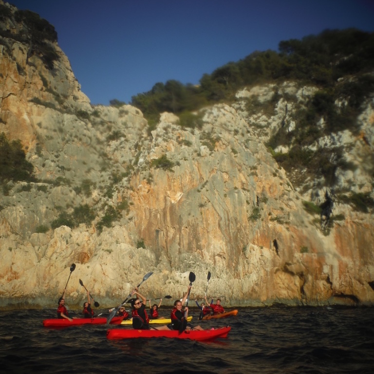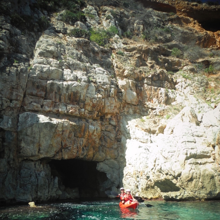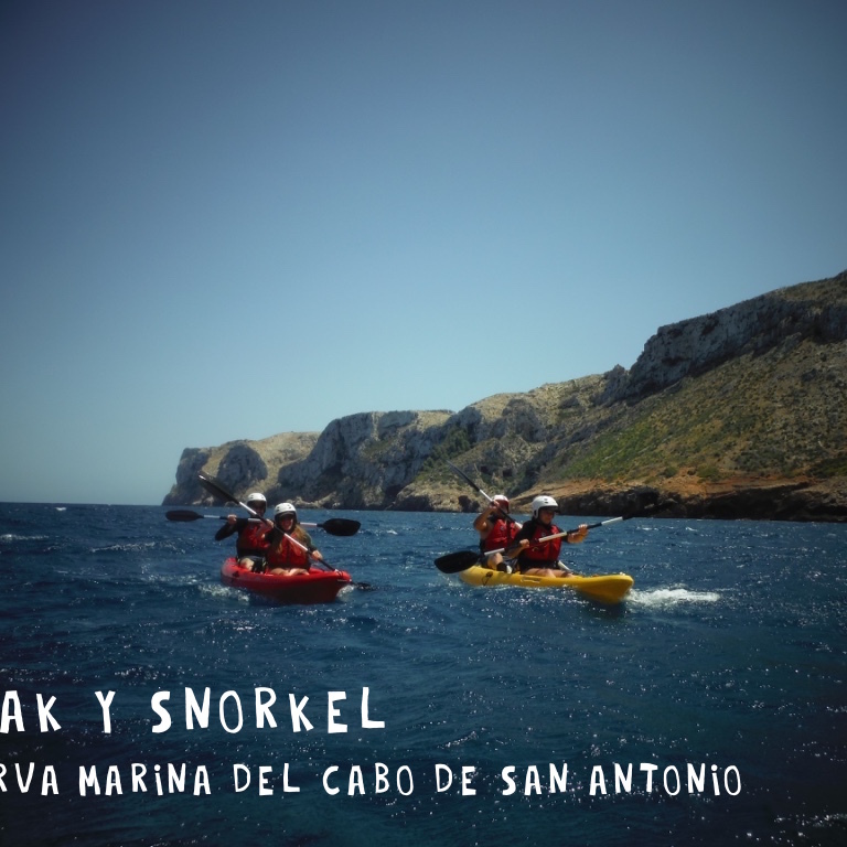 Descripción: Nuestra ruta estrella transcurre en la reserva marina del cabo de san Antonio entre Dènia y Xabia, combinaremos el kayak con algún salto al agua y una ruta de snorkel muy didáctica, donde descubriremos lo que el mar quiera mostrarnos, veremos esponjas, erizos, llisas y meros y con suerte algún pulpo despistado. Visitaremos varias cuevas y acabaremos visitando la cova tallada donde nos adentramos con linternas y os contaremos el origen y los distintos usos que la cueva ha tenido. Existen otras rutas en calas muy emblemáticas como cala Granadella y la cala barraca y además podemos enseñaros fantásticos atardeceres y nuestros rincones favoritos como la cova del Llop Marí, cova Dels Orguens o la isla del Portitxol.