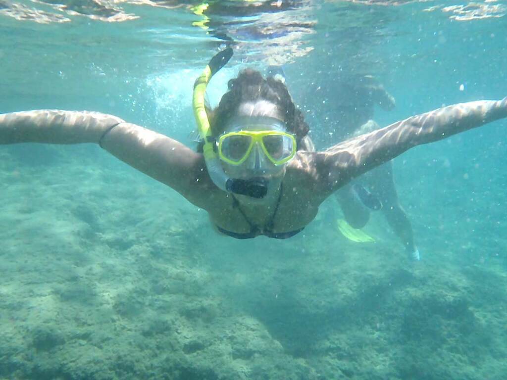 La manera más fácil de poder observar el fondo marino es con gafas de bucear, acompañarnos con un tubo para no tener que sacar la cabeza del agua sin perder de vista lo que estemos observando y si empleamos aletas para propulsarnos podríamos ser casi sirenas. Somos partidarios de llevar camisetas térmicas o trajes cortos de neopreno, aunque sea verano nuestro cuerpo nos lo agradecerá. Una vez equipados realizaremos una ruta explicativa donde nuestros guías nos irán contando lo que el mar ese día quiera mostrarnos. Sargos, salpas, castañuelas, esponjas, pulpos e incluso alguna manta raya o tortuga.