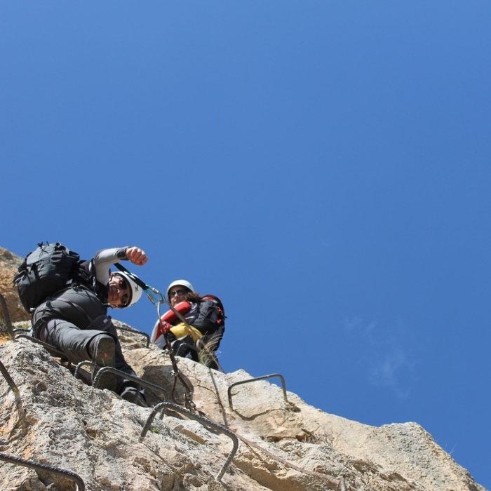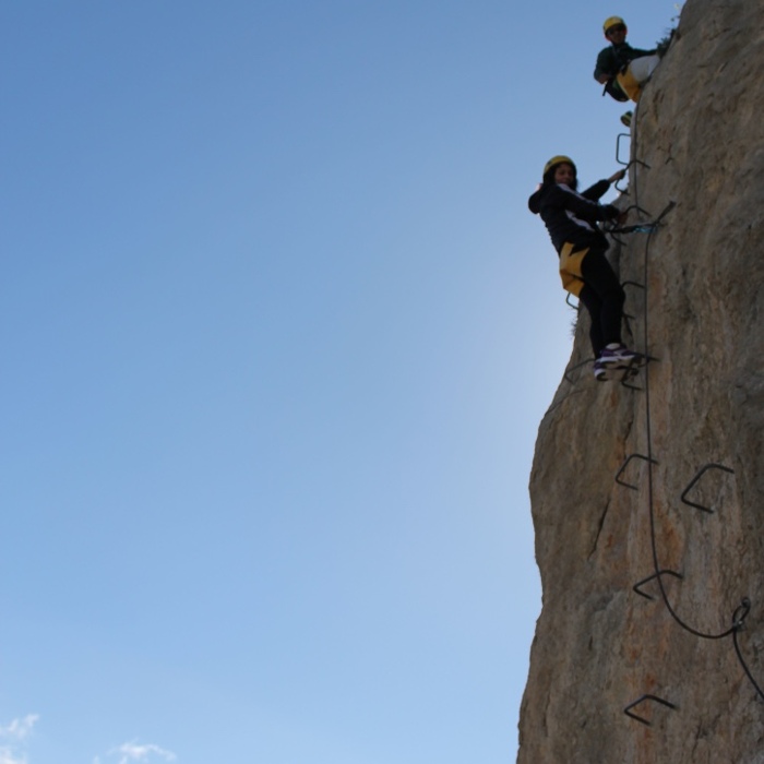 Es la opción más asequible para probar la escalada, son rutas de escalada equipadas con escalones metálicos en la roca y un sistema anticaídas. Para los que quieren escalar y nunca lo han hecho es la mejor manera de probarlo. Esto no significa que sea aburrido, al contrario, al facilitar la progresión por la pared, nos permite disfrutar más aun del paisaje y sin requerir mucha técnica. Seremos auténticos alpinistas, subiremos por la roca como lagartijas y descubriremos que la aventura puede ser segura y divertida a la vez.